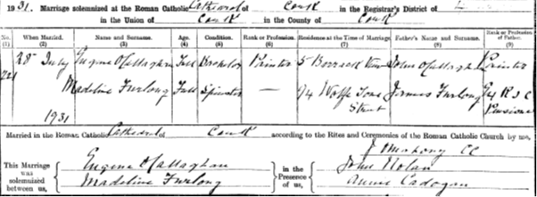 A year after her mother “Babe”’s death, Madeline married Eugene “Gene” O’CALLAGHAN (no known relation), a painter (decorator) on 28th July 1931. She was 39-years-old.