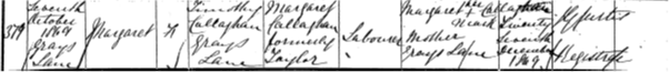 Margaret CALLAGHAN, known as Maggie and by her nickname “Babe”, was the younger sister of my great grandmother Mary Bridget CALLAGHAN. She was born in Cork city, at 9 Gray’s Lane, off Pope’s Quay on the 7th of October 1869 to Timothy CALLAGHAN and his first wife, Margaret TAYLOR.