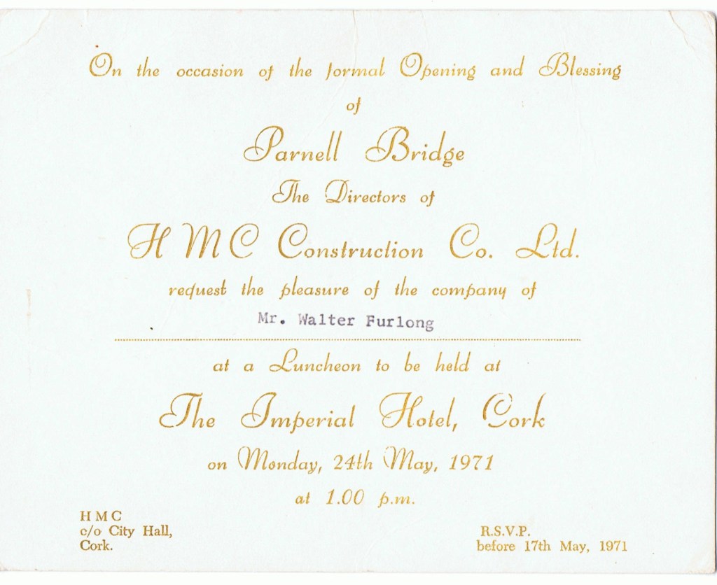 In 1971 Walter was invited to the opening of the Parnell Bridge. The invitation has stayed in the family’s possession.