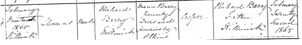 Maria (Atkin/s) DAVIS remarried to Richard BARRY, a cooper on October 12th 1863 in the Ballymore parish. The marriage was witnessed by James NAYLER (?) and Margaret DAVIS. They lived at Little Assaly, Killinick.