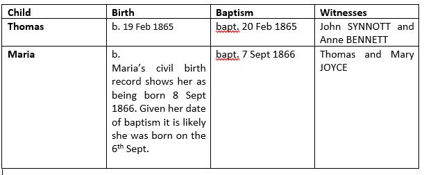 Given Richard’s occupation it may have been that he was John DAVIS’s apprentice or worked with him. The 1901 Census shows us there was a significant age gap between Maria and Richard. Perhaps Richard took on the business and in return married the widowed Maria and supported her three known children who would have been aged around ten years and under.