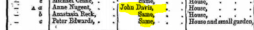 In the Griffiths Valuation (1853) we see a John DAVIS renting a house from a Patrick JOYCE in Little Assaly, Killinick where our John plied his trade as a cooper. John and Maria (Atkin/s) DAVIS’ daughter Margaret was baptised in this parish in March 1854, so this John may well be our John.