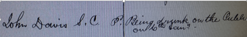 John appears a number of times in the court records during his career. Below John is a sub constable having collared a drunk. On March 7th 1877 in Clonmel the defendant was found guilty of being drunk in a public place, and his punishment was to pay a shilling to the Crown and a shilling in costs. Failure to pay would result in seven days imprisonment, without hard labour.