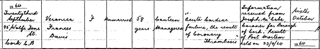 I have not found details of when Veronica returned to Cork. [3]
