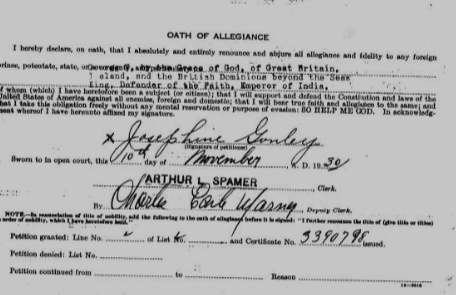 Josephine was in the census of 1940 lodging with her sister Sadie at West Baltimore St. with Margaret McCafferty, who was a witness for Josephine’s citizenship application.